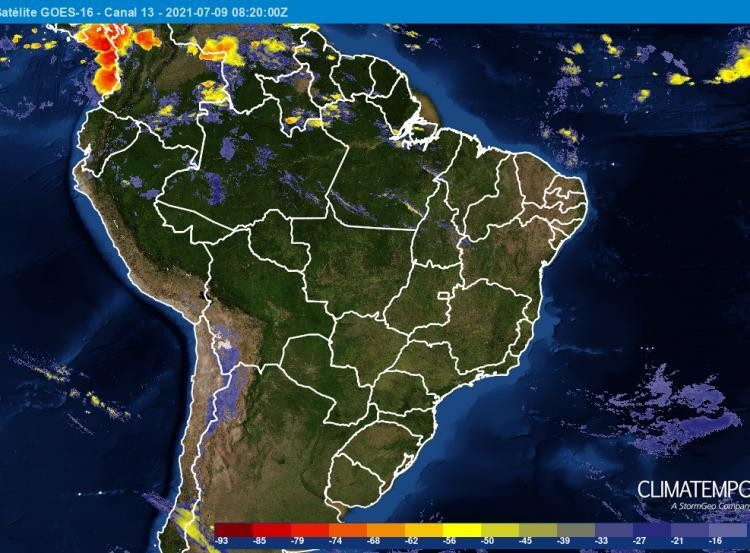 A previsão é de chuva frequente nos estados da Região Norte, principalmente em Roraima, noroeste do Amazonas e norte do Amapá. À tarde e à noite, deve chover também no leste do Pará e oeste do Acre.