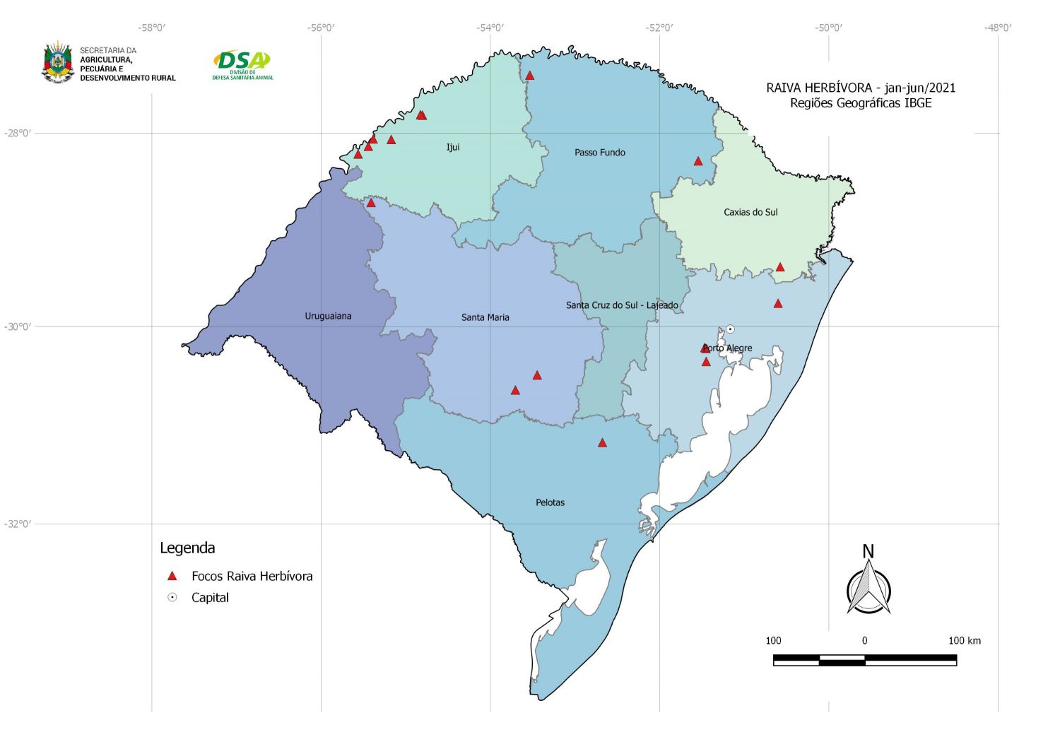 A Secretaria da Agricultura, Pecuária e Desenvolvimento Rural (SEAPDR) emitiu alerta sanitário para a raiva dos herbívoros e está orientando os produtores rurais a vacinar ou revacinar seu rebanho para prevenir a doença. De janeiro a junho de 2021, o Programa de Controle da Raiva Herbívora da Secretaria contabilizou 17 focos de raiva em 13 municípios, e possível evolução de focos em mais 28 cidades.